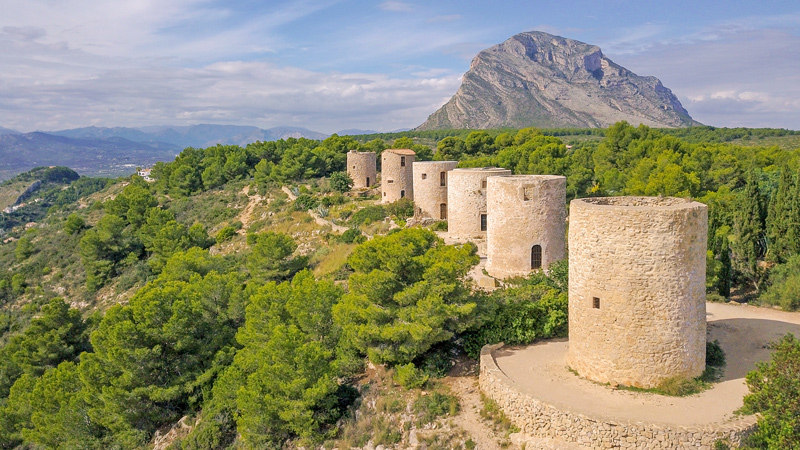 I dag sykles det langs Montgó-fjellet helt til Denia. Underveis vil du se tradisjonelle bygninger kalt Riu Raus (fra 1700-tallet). Disse bygningene var svært viktige for den nøkkelaktiviteten som var druetørking. Noen brukes nå til andre formål, for eksempel som utendørs markeder. Til slutt, ved sjøen, venter Denia på deg. Denne byen har mange fantastiske, rolige strender som du kan nyte, også om vinteren hvis solen skinner. Denia ble utnevnt til UNESCO Creative City i 2015, på grunn av kvaliteten og variasjonen i sine utmerkede lokale retter. Nyt dem!!