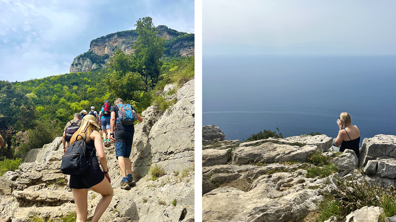 Dagen etter var det klart for første vandredag og etter frokost spente vi på oss joggeskoene og satt kursen mot Agerola, startpunktet for dagens tur. Her fikk vi med oss deilige hjemmelagede sandwicher og satt i marsj på Gudestien (på italiensk «Sentiero degli Dei»). Denne turen har en helt fantastisk utsikt over havet og vi fikk se mange av de fine landsbyene som ligger langs kysten.