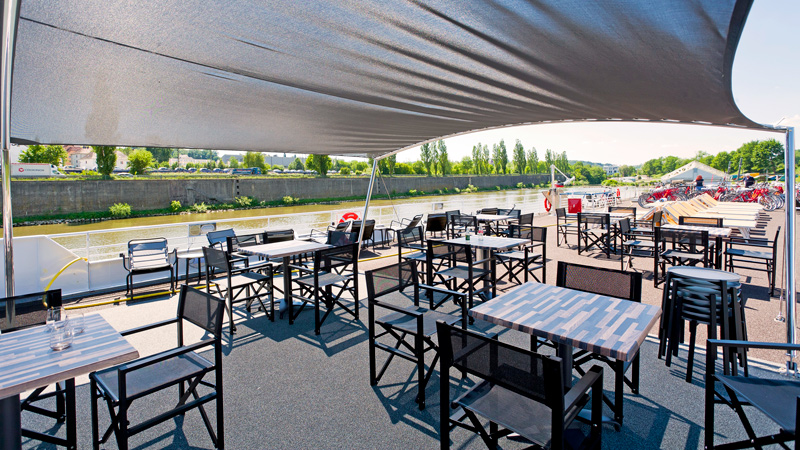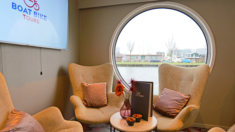 Dere bor på båten Arkona som ble renovert i 2017/2018. Båten har en restaurant og et separat salongområde med bar på øvre dekk. Begge er romslige og moderne med store panoramavinduer. Wi-Fi er tilgjengelig. På det delvis oberbygde soldekket er det plassert ut stoler og solsenger slik at du kan slappe av, ta en drink og nyte utsikten mens du seiler. Sykler blir oppbevart på en egen del av soldekket.