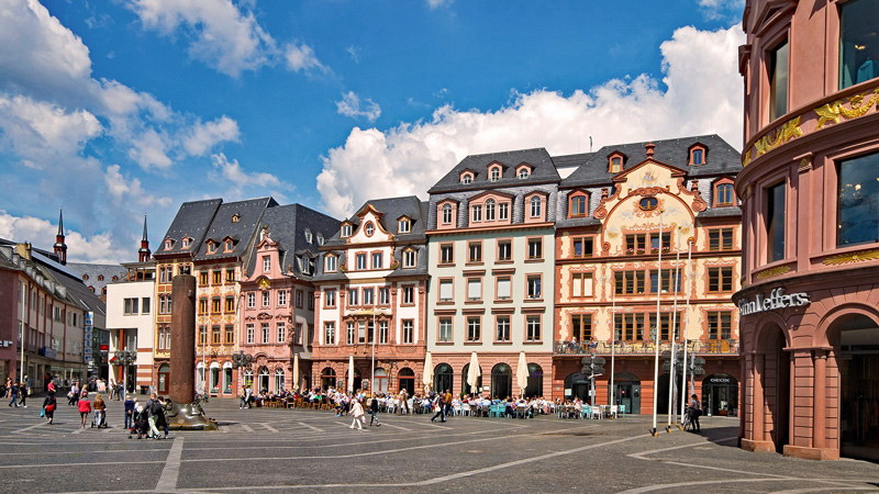 Start dagen med en liten spasertur i Rüdesheim før dagens sykkeltur til Mainz begynner. I dag kan du velge mellom en kortere, flatere tur, eller en lengre tur med større høydeforskjell. Den kortere turen går langs Rhinens høyre bredde og til Mainz. Den lengre turen går fra Oestrich og oppover (med en stigning på opptil 5%), til det vakre romanske og tidligere gotiske Eberbach-klosteret, et tidligere cistercienserkloster som også er kjent for sin vinproduksjon (anbefales). I Mainz krysses Rhinen-broen direkte inn til gamlebyen hvor båten ligger fortøyd. Resten av ettermiddagen og kvelden kan du bruke i gamlebyen i Mainz med sine mange severdigheter.