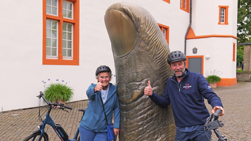 Båten kaster loss tidlig om morgenen for å begynne seilingen nedstrøms. Morgenfugler kan igjen nyte det fantastiske landskaper i Øvre mellomrhindalen, som tidligere har blitt syklet. Ved Koblenz seiler båten forbi «Deutsche Eck» og svinger inn i Moseldalen for å nå slusen i Lehmen. Her starter dagens sykkeltur langs Mosel rundt lunsjtider. I Moselkern sykler du en kort strekning oppover gjennom Elzbach-dalen. (Den siste strekningen er også mulig å gå til fots). Målet er det vakre slottet Eltz fra 1100-tallet, som ligger på en åskam og er et av de mest berømte slottene i Tyskland. Den siste delen av sykkelturen går via Moselkern og Müden til vinbyen Treis-Karden.