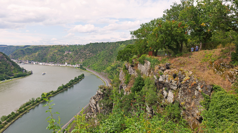 Ombordstigning kl. 14.00. Kl. 15.00 seiler skipet sørover langs Rhinen, forbi Boppard, og inn i UNESCOs verdensarvliste - Øvre mellomrhindalen, til St. Goar. Ruinene av Rheinfels slott ligger over den lille byen. På den andre siden av Rhinen ligger de to slottene Katz og Maus (Katt og Mus). Litt lenger oppstrøms ligger den berømte Loreley-klippen, hvor, ifølge legenden, den vakre Loreley med sitt lange blonde hår fortryllet Rhinens båtmenn med sin sang og drev dem til deres undergang.