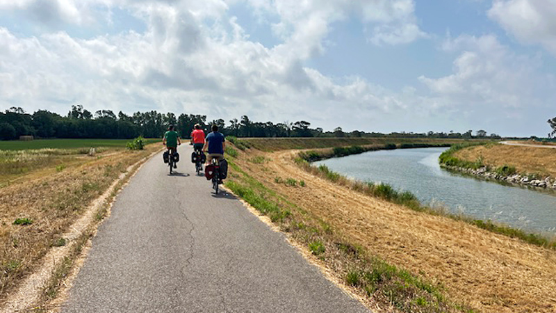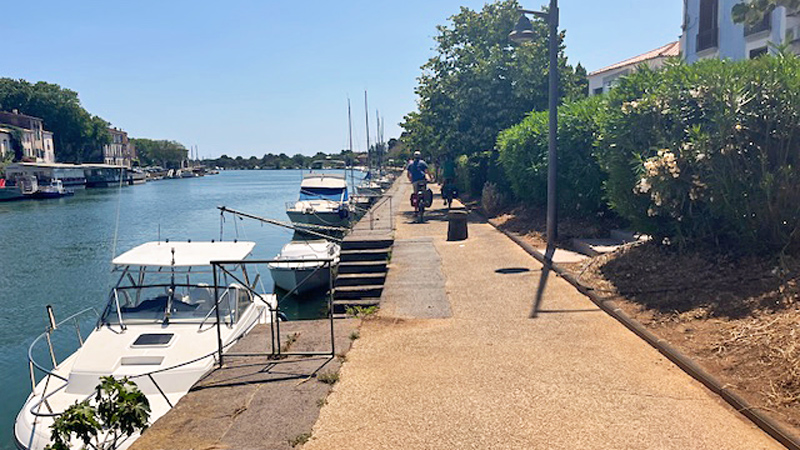 Første del av sykkelturen går langs kystsykkelveien fra Sète og til Agde. Cap d’Agde er det perfekte stedet for bading og lange spaserturer på stranden. Videre går resten av turen langs Hèrault, forbi Agde ved bredden av Canal du Midi, bort fra Middelhavet og mot Bèziers. Byen har en 2700år lang historie og er fødestedet til Pierre Raul Riquet, Canal du Midis «far». Byen er omgitt av enorme vinmarker.