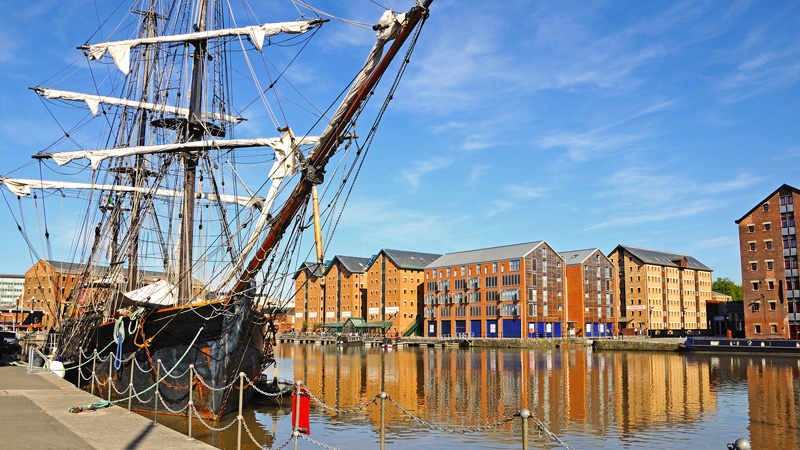 Dere blir hentet på flyplassen og kjørt til turens startpunkt, den historiske byen Gloucester i England. De restaurerte Gloucester Docks viser byens industrielle fortid og huser i dag museer, butikker og kafeer. Som porten til de pittoreske Cotswolds, kombinerer Gloucester rik historie med moderne attraksjoner, noe som gjør den til en livlig og sjarmerende destinasjon. Det blir litt fritid til å utforske byen før du møter guiden som tar deg med til et av byens mest kjente landemerket – den praktfulle Gloucester-katedralen. Katedralen er et flott eksempel på gotisk arkitektur og er kjent som innspillingssted for blant annet Harry Potter. Her blir det en guidet omvisning. Så videre til hotellet for innsjekk, velkomstdrink og middag.