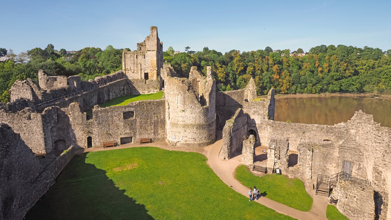 Fra Monmouth til slottet Raglan, et av de flotteste og mest imponerende slottene i Wales. I motsetning til mange tidligere slott ble Raglan bygget på 1400-tallet, og ble ikke bare utformet som en forsvarsborg, men også som en luksuriøs residens. I dag forvaltes Raglan Castle av Cadw, den walisiske kulturminneorganisasjonen, og er åpent for publikum hver dag. Vi stopper for et lite besøk. Så sykler vi gjennom den vakre Wye-delen, langt borte fra folkelivet, langs elven Wye og «Forest of Dean» fra den walisiske siden av elven. Det blir et stopp i den walisiske markedsbyen Trellech for lunsj. På ettermiddagen stopper vi i den livlige elvebyen Tintern. Her ligger det verdensberømte cistercienserklosteret som vi skal besøke. Klosteret som ble grunnlagt i 1131, er et av de best bevarte middelalderklostrene i Storbritannia. Det har inspirert poeter, kunstnere og besøkende i århundrer med sine gotiske buer og rolige omgivelser ved elvebredden. Etter besøket i klosteret blir det litt fritid til å utforske landsbyen før vi klatrer opp i omkringliggende landskapet med storslått utsikt over det walisiske og engelske landskapet. I kveld ankommer vi Chepstow, hvor en fantastisk by har blitt bygget rundt det imponerende skittet fra 1000-tallet som ligger langs bredden av elven Wye.