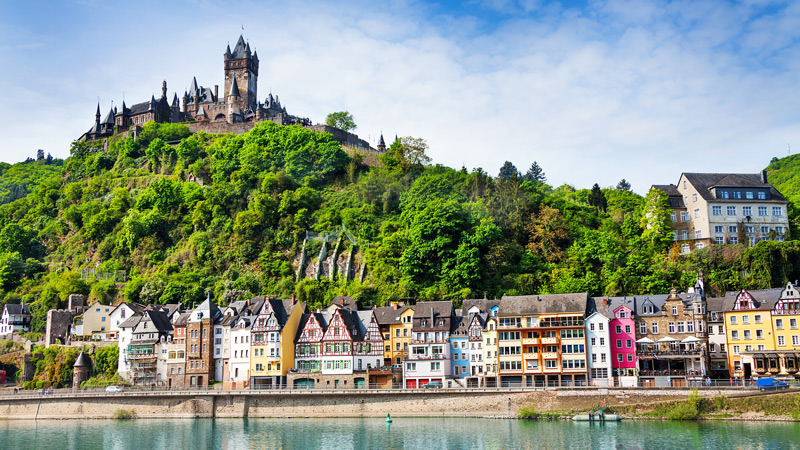 Ta deg tid til å utforske vinlandsbyen Bernkastel-Kues, som gir et fascinerende innblikk i regionens rike kulturarv og naturskjønne omgivelser. Vandre gjennom de smale brosteinsgatene og beundre arkitekturen. Gå ikke glipp av muligheten til å smake på noen av regionens fineste viner på en av de lokale vintavernaene, der du kan nyte Moseldalens smaker i hver eneste slurk. Byen Zeltingen er kjent for sine storslåtte barokkbygninger som er gjennomsyret av Mosel-tradisjonen. Ta deg tid til å vandre gjennom gatene, beundre de elegante fasadene og nyte skjønnheten i de idylliske omgivelsene. Fra Traben-Trarbach går turen til den pittoreske Mosel-sløyfen i Zell, kjent som «Zeller Hamm». Her, midt mellom utallige vinbakker, ligger den majestetiske borgen Marienburg, som kan skilte med en historie som strekker seg over 900 år. Fra slottet, som ligger på toppen av en fjellrygg, har du en storslått utsikt over det omkringliggende landskapet. Videre på ruten får du også en fantastisk utsikt over Europas bratteste vinmark, Calmont, før du ankommer byen Cochem. Her, midt i de idylliske omgivelsene ved Mosel-elven, ligger den imponerende borgen Reichsburg, et symbol på tysk slottsromantikk. Vinsmaking  Cochem.