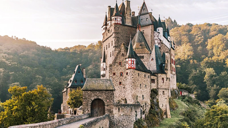 Etter noen få kilometer med sykling kommer du til Moselkern, som ligger langs bredden av elven Mosel. Herfra kan du ta en kort avstikker til det nærliggende eventyrslottet Eltz, en fantastisk middelalderfestning som ser ut som tatt rett ut av en eventyrbok. På veien passerer du den sjarmerende landsbyen Kobern-Gondorf, der historiske bindingsverkshus ligger langs torget, før du til slutt når Koblenz. I byen der Mosel renner ut i Rhinen ved det ikoniske Deutsches Eck, venter et fengslende panorama på deg. Ta taubanen til Ehrenbreitstein-festning, hvor du får en fantastisk utsikt over byen og det omkringliggende landskapet (inkludert i turen). Utforsk festningen og dykk ned i byens rike historie gjennom de mange severdighetene og landemerkene, og fordyp deg i byens mangfoldige fortid. Når dagen går mot slutten, kan du ta en rolig kveldstur gjennom de sjarmerende gatene i Koblenz og nyte atmosfæren.