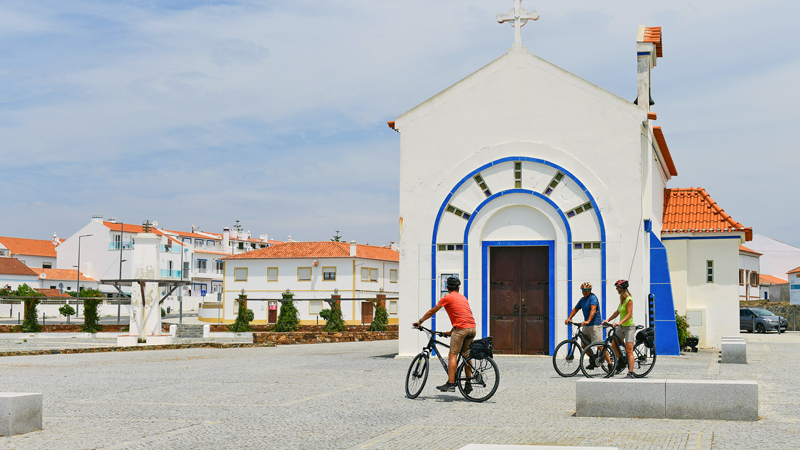 På sykkel langs elven til den fantastiske stranden i Odeceixe – på listen over de 5 vakreste strendene i Portugal. Videre i jordbruksområder til en liten kafe for forfriskninger før ankomst Aljezur. Byen sies å være en av de siste som falt i hendene på Maurerne. Lokal håndverksbutikk ved den gamle broen er verdt et besøk.