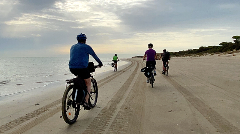 Velkommen til Lyskysten – Costa de la Luz, en av Spanias best bevarte hemmeligheter. Her, på den sørvestlige kysten mot Atlanterhavet, venter en sykkeltur fylt med ekte andalusisk sjarm. Du tråkker deg gjennom hvitkalkede fiskerlandsbyer, lange sandstrender og åpne kystlandskap. Underveis på sykkelturen kan du stoppe ved lokale barer, nyte fersk sjømat og smake på den lokale vinen Manzanilla. Okerfargede klipper og sanddyner rammer inn strender som fortsatt føles urørte og fredelige. Dette er det ekte Sør-Spania – uformelt, naturlig og fullt av lys.