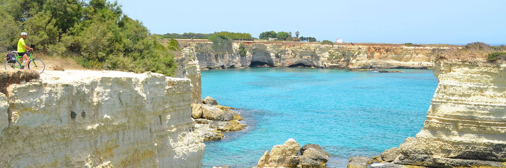 Langs Adriaterhavet på kystveier langs den ugjestmilde, men dramatisk vakre klippekysten. Sykkeldagen byr på enkelte bakker og svært behagelig utsikt. Stopp gjerne i vesle Tricase Porto for forfriskninger. Så mot Torre Miggiano og bademuligheter i Porto Miggiano. På denne strekningen er du virkelig fjernt fra det turistifiserte Italia, og i noen av landsbyene her snakkes det fortsatt gresk. Videre gjennom Cesare Terme; byen er kjent for sitt kildevann som springer ut av klippeveggen og rett i havet, og ligger bare åtte mil fra Albania og ti mil fra Korfu. Etterhvert når dere Otranto, grunnlagt i antikken. Byen er Italias østligste punkt og har en historie preget av tyrkernes totale nedslakting av befolkningen i 1480. Levninger ligger for eksempel utstilt i byens romerske katedral. Katedralen er for øvrig også kjent for å ha Sør-Italias vakreste gulvmosaikk, datert år 1160.