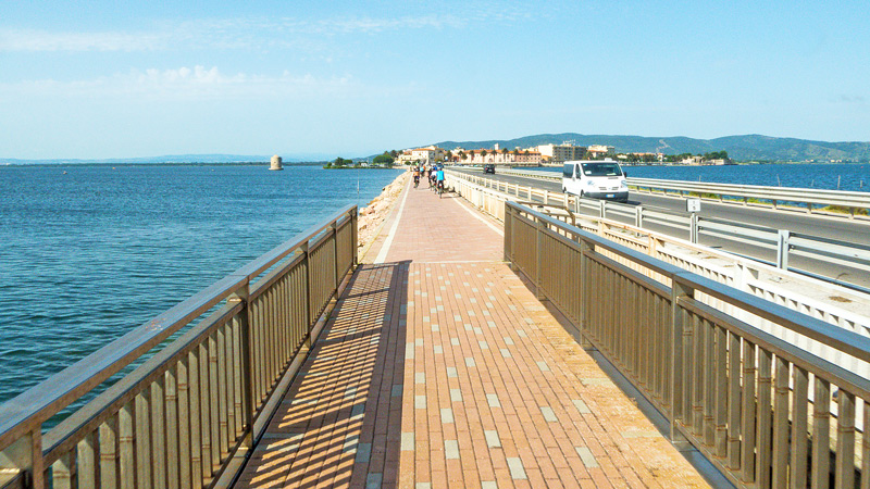 Så deilig å våkne her i Orbetello, med den blikkstille lagunen, havet i det fjerne og det ruvende Monte Argentario i vest! I dag tar vi først sykkelstien inn til fastlandet igjen. Flott landsbygd med lange linjer. Oliven og vin på rekke og rad. Vi følger først en liten grusvei som ligger litt opp fra sletta med fin utsikt. Slik kommer vi klar av hovedveien, og kan fortsette på små, asfalterte gårdsveier. Snart bærer det litt oppover og vi kommer gjennom et nydelig åslandskap med variert jordbruk og nydelige vinmarker. Her har vi funnet en liten, hyggelig Agriturismo, der fruen i huset, Moira, tar godt hånd om oss. Først et bad i bassenget med husets hvitvin på bassengkanten. Så en deilig og sunn lunsj med kortreist, biologisk mat i mange variasjoner. Etter lunsj må vi litt høyere opp til et fint utsiktspunkt, før vi kan ta fatt på de lange, slakke nedoverbakkene i naturskjønne omgivelser som fører oss inn til provinshovedstaden i Syd-Toscana. Grosseto som den heter, er nærmest bilfri i den karakteristiske gamlebyen innenfor sine mektige festningsverk. Her er det ingen turistfeller og man kan trygt velge den restauranten man vil denne kvelden.
