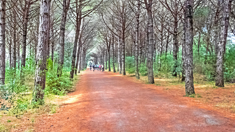 I formiddag skal vi se toscansk landsbygd på sitt aller vakreste! Helt inn til foten av åsene, med havet i venstre øyekrok. Bolgheri, knøttliten festningsby med milelang sypressallé, kjent for sin nydelige vin fra de velholdte vinmarkene som preger området. Barstopp og spasertur her, før vi triller ned til sjøen igjen på små grusveier. Piknik i pinjeskogen ved Marina di Bibbona eller på taverna ved stranden, avhengig av været. Flott tur gjennom pinjeskogen i Cecina, før vi kommer til en av de mest fasjonable strekningene på kysten. Her ligger de gamle patrisiervillaene på rekke og rad på hver sin klippe – med bølgeskvulp fra dypet.