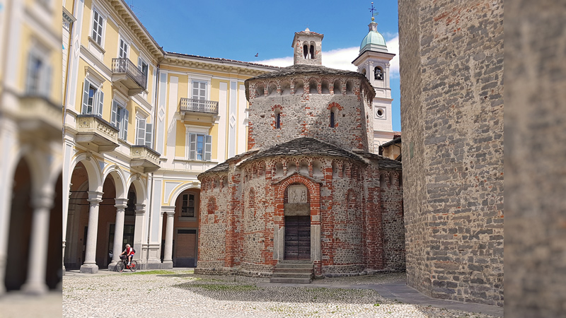 Fra Gattinara krysses Sesia-elven som slynger seg gjennom det frodige Piemonte-landskapet. Etter elvekryssingen venter en naturskjønn rute med lett kupert terreng, med rolige opp- og nedoverbakker gjennom små landsbyer og vinmarker. Underveis møter du stadig vakrere utsikt over det omkringliggende landskapet, der skogkledde åser og vingårder preger horisonten. Etter en stund kommer du til en av Piemontes skjulte perler, den vakre Ortasjøen. Det lille innsjøområdet er kjent for sin ro, krystallklare vann og idylliske omgivelser. Langs bredden av sjøen og gjennom små pittoreske steder, før du ankommer Pella, en sjarmerende landsby ved vannkanten. Herfra tar du fergen over innsjøen, en avslappet båttur som gir deg fantastisk utsikt mot San Giulio-øya, en liten perle midt i sjøen. Øya er hjem til det historiske San Giulio-klosteret som troner majestetisk over vannet. I Orta går du i land, en av de mest sjarmerende landsbyene i Piemonte kjent for sine trange gater, historiske bygninger og postkortvakre utsikt over innsjøen.