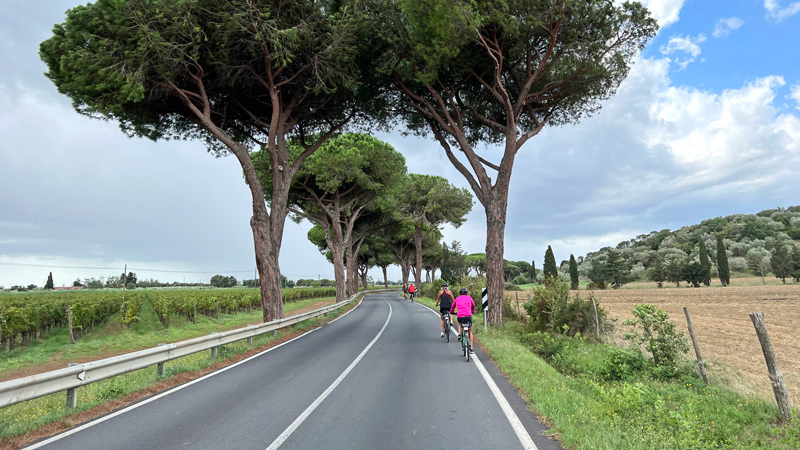 Du krysser elva Arno og sykler langs den gamle pilegrimsveien Via Francigena som i middelalderen ledet til Roma og de hellige gravene til apostlene Peter og Paulus.